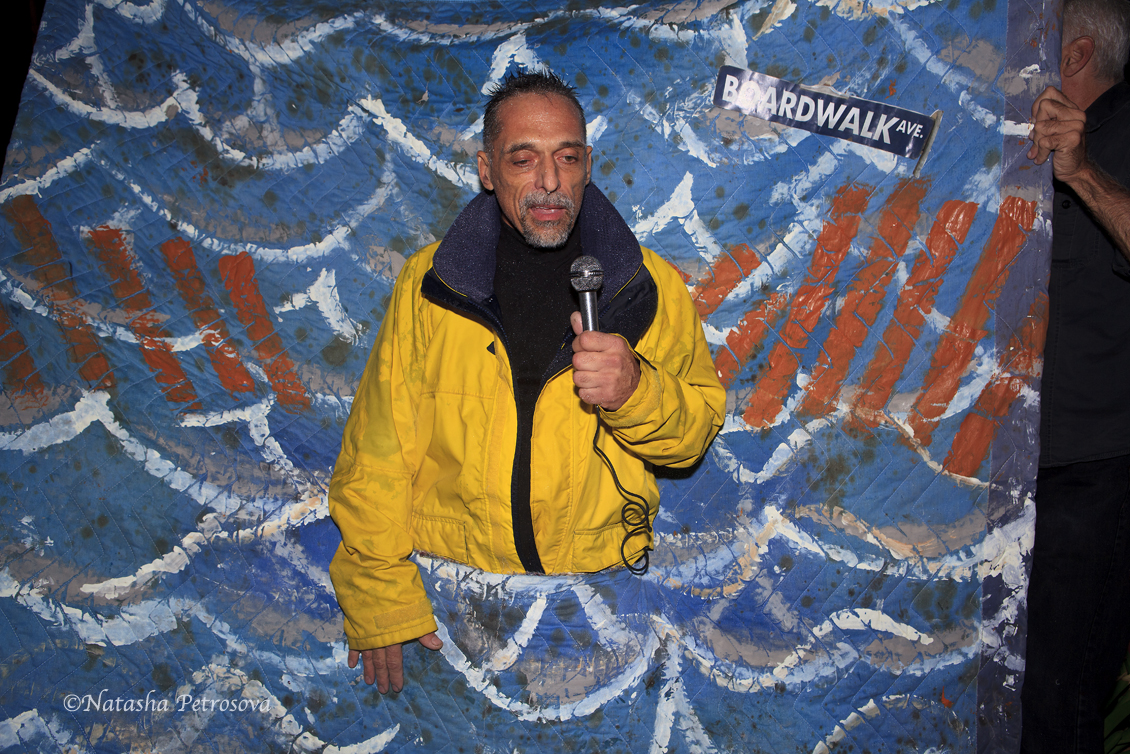 | Weather forecast guy talks about hurricane Sandy and a situation on the East Cost in a humorous way |